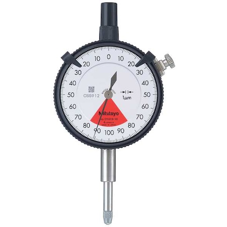 Mitutoyo 2901S-10 Dial Indicator, M2.5X0.45 Thread, 8mm Stem Dia., Lug Back, White Dial, 80-0-80 Reading, 57mm Dial Dia., 0-0.16mm Range, 0.001mm Graduation, +/-0.004mm Accuracy