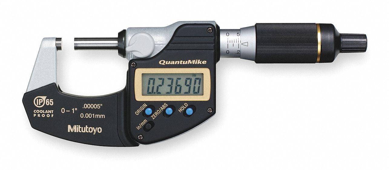 Mitutoyo 293-185-30 QuantuMike DIGIMATIC Micrometer, 0-1", IP65, 0.00005", NO SPC, Black/Gray
