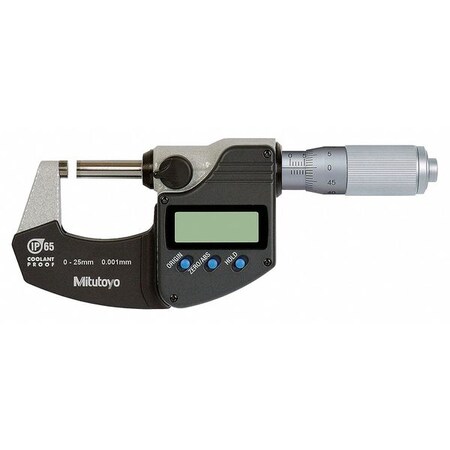 Mitutoyo 293-248 Coolant Proof LCD Micrometer, Friction Thimble, 0-25mm Range, 0.001mm Graduation, +/-0.001mm Accuracy, Without SPC