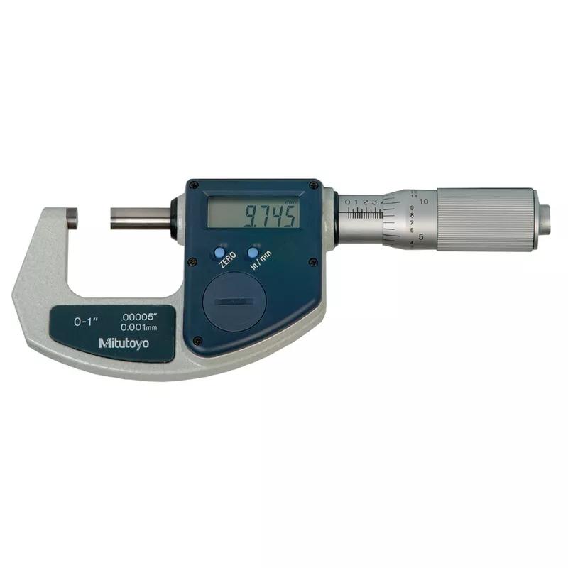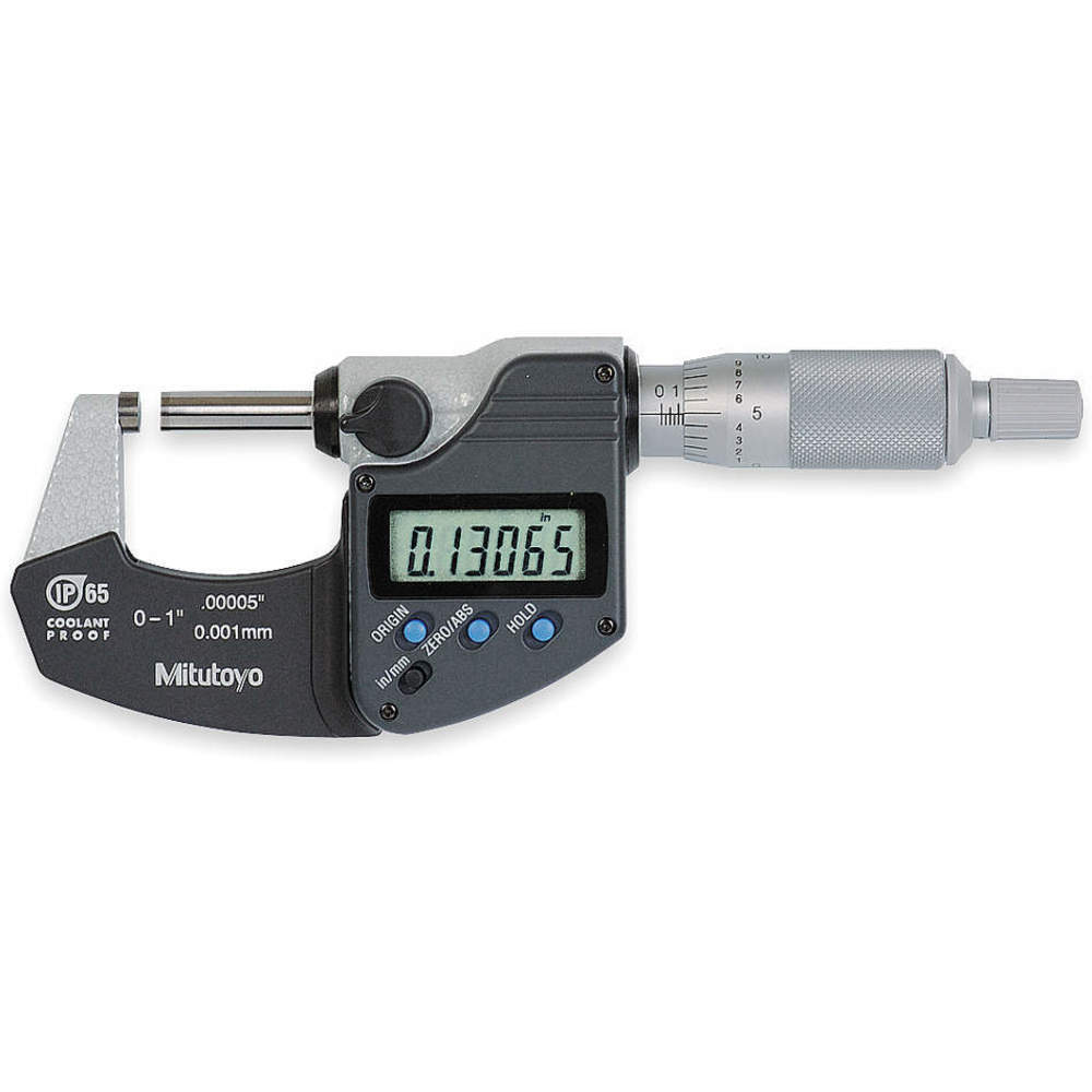 Mitutoyo 293-330 Digimatic Outside Micrometer, Inch/Metric, Ratchet Stop, 0-1" (0-25.4mm) Range, 0.00005" (0.001mm) Resolution, +/-.00005" Accuracy, Meets IP65 Specifications