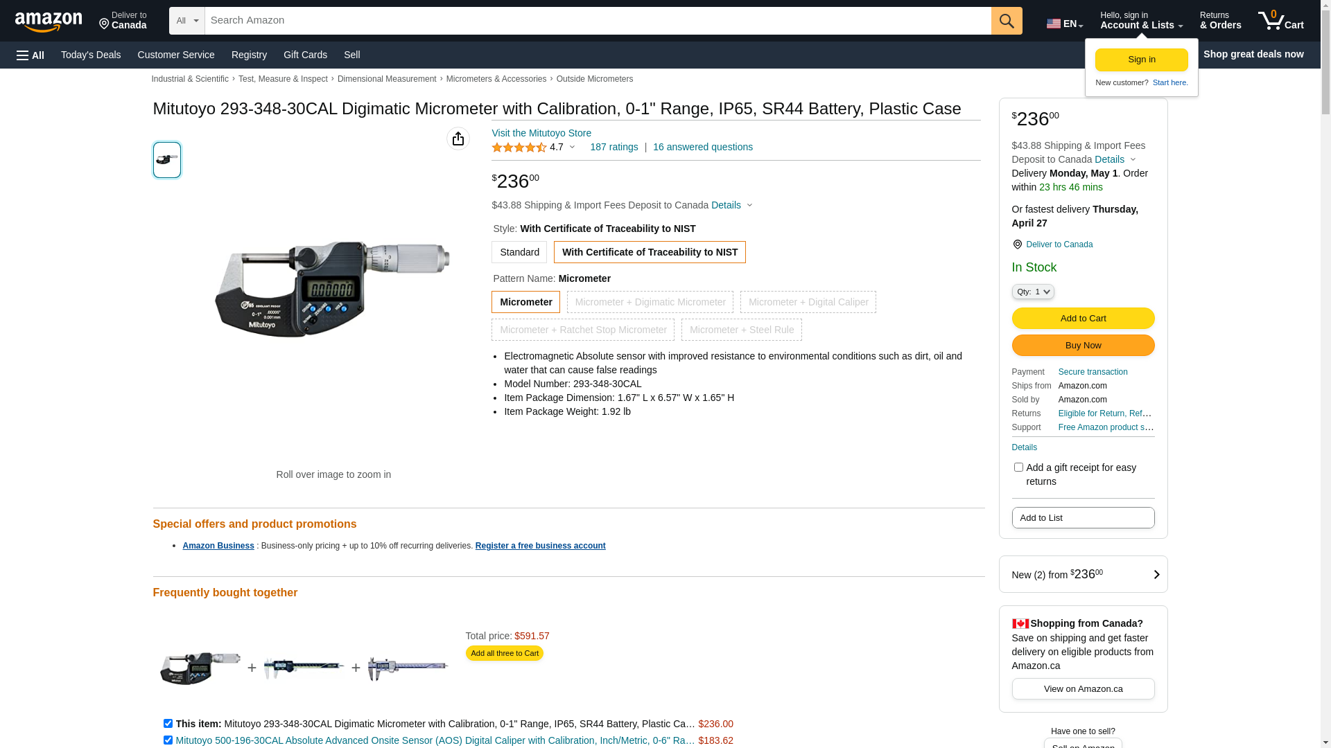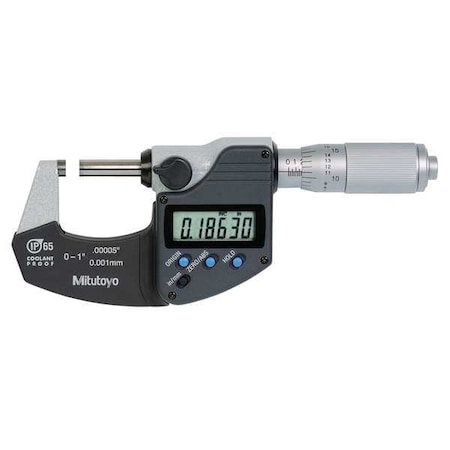 Mitutoyo 293-348-30CAL Digimatic Micrometer with Calibration, 0-1" Range, IP65, SR44 Battery, Plastic Case