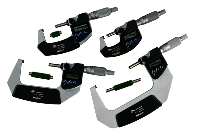 Mitutoyo 293-961 Coolant Proof LCD Micrometer Set, Ratchet Stop, 0-4"/0-101.6mm Range, 0.001mm/0.00005" Graduation, SPC Output