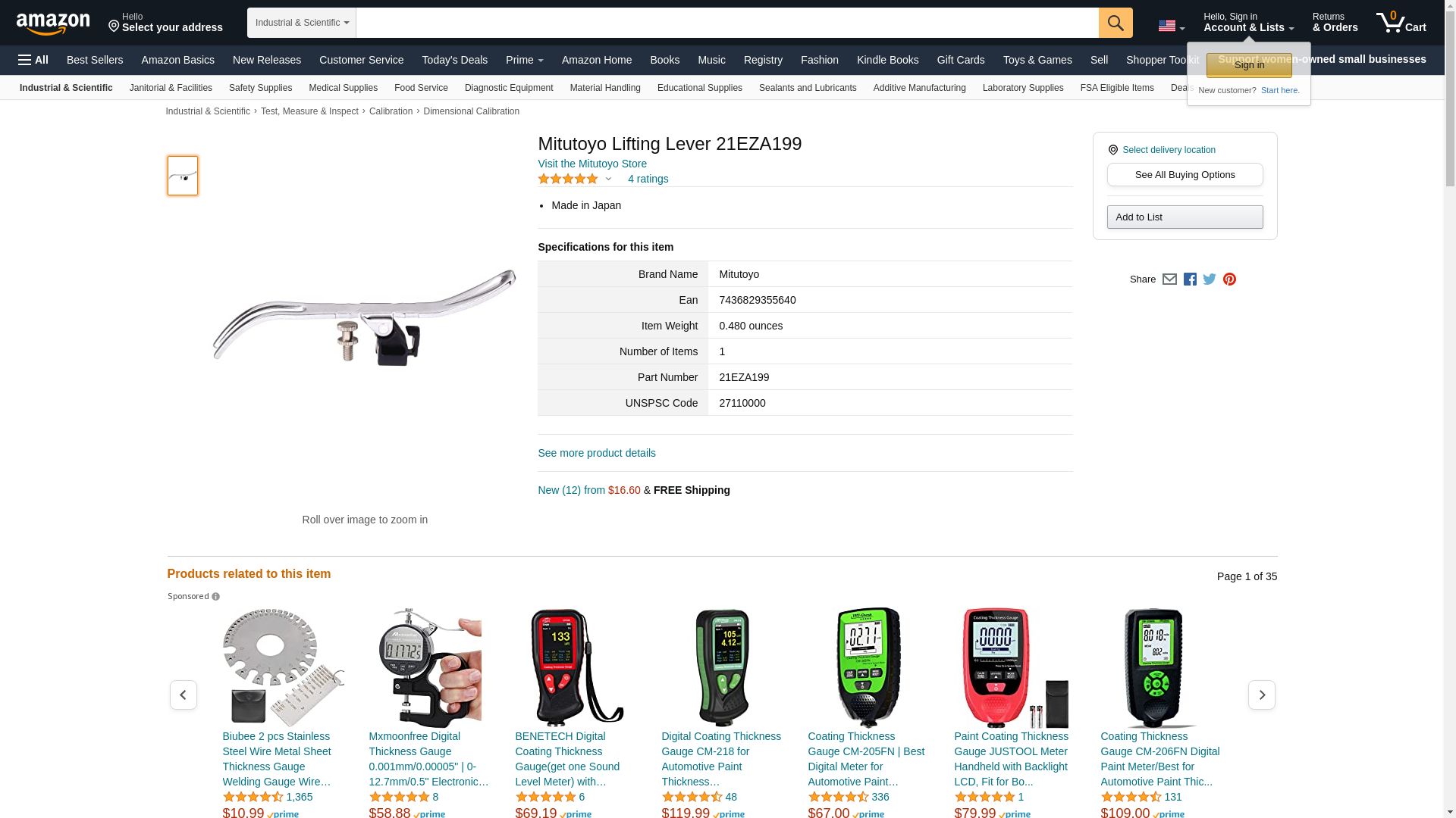 Mitutoyo, 21EZA199, Lifting Lever