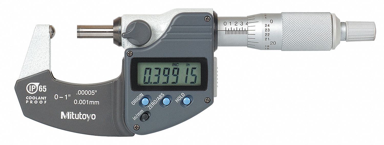 Mitutoyo 395-351-30 BMS-1"MX Micrometer, IP65, Spherical Face, 0"-1", 0.00005"/0.001 mm