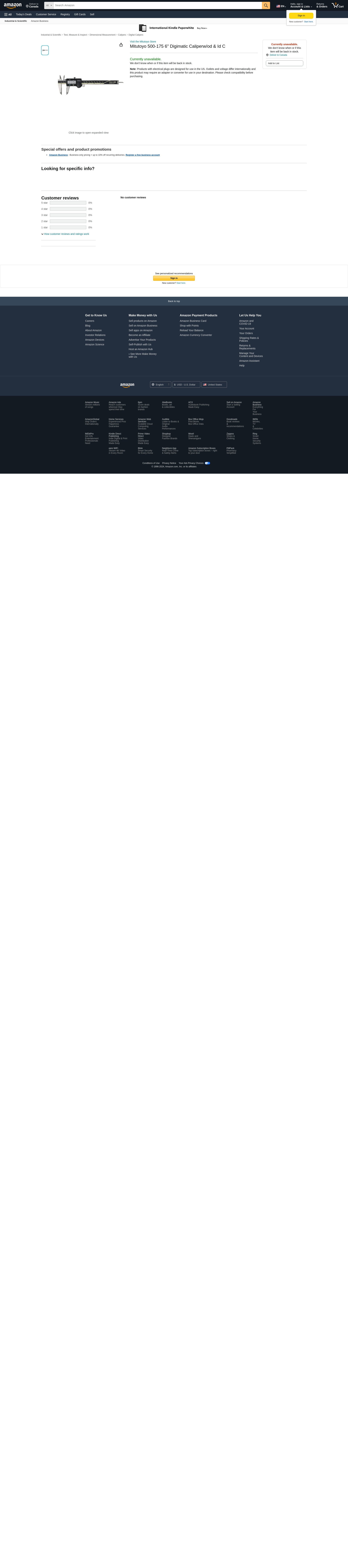 Mitutoyo 500-175 6" Digimatic Caliperw/od & Id C