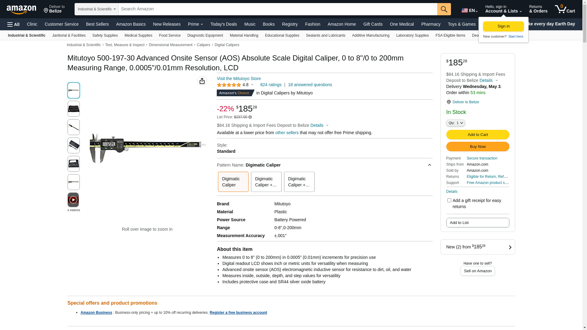 Mitutoyo 500-197-30 Advanced Onsite Sensor (AOS) Absolute Scale Digital Caliper, 0 to 8"/0 to 200mm Measuring Range, 0.0005"/0.01mm Resolution, LCD (2 Pack)