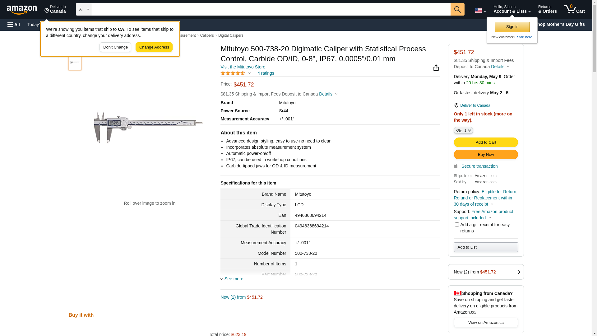 | Guardian | MITUTOYO500-738-20 | 1 | -2 | 1 | 1 @ $528.00 |