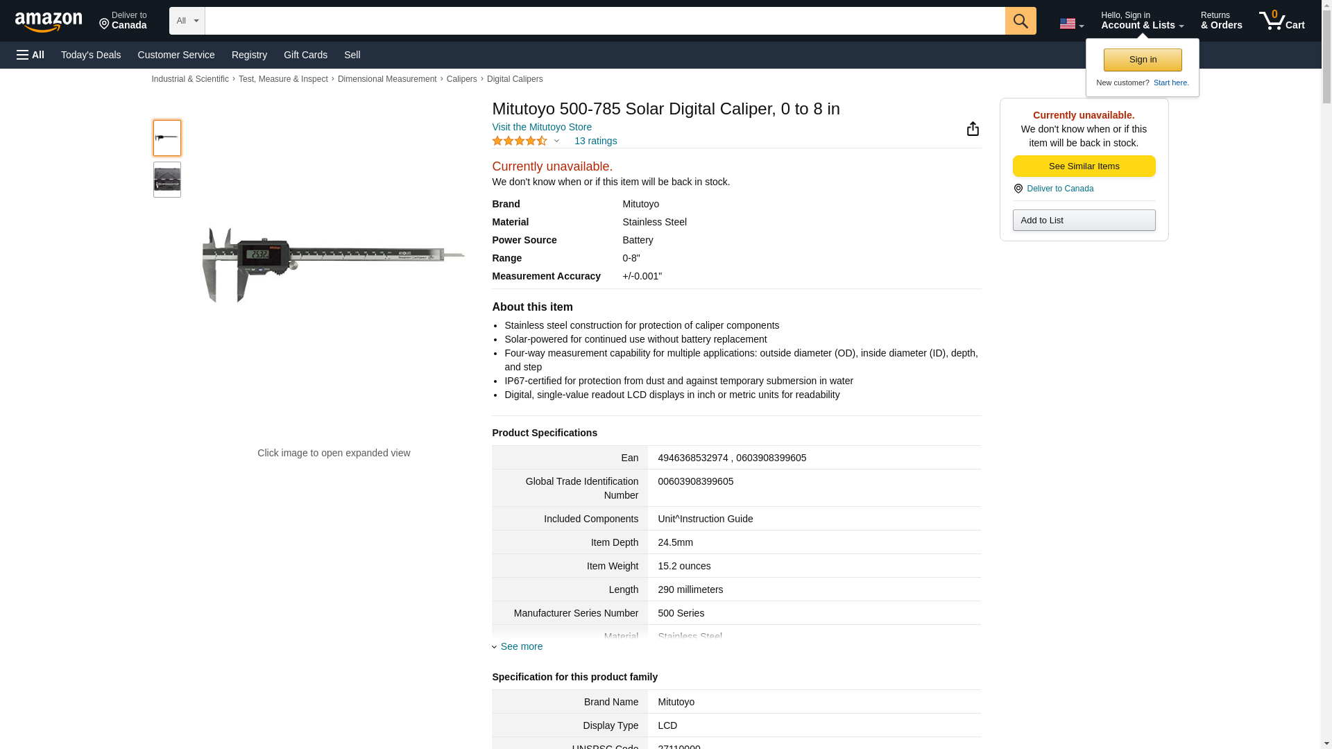 Solar Digital Caliper Caliper Range 0-8 In./0-200mm Resolution 0.0005 In./0.01mm IP Rating 67 SPC Output No Accuracy +/-0.001 In./0.025mm Caliper Material Stainless Steel Absolute Positioning Yes Jaw Depth 1-31/32 In. Long Form Calibration Certificate No Features Rolling Thumb Wheel Control Buttons on Face Origin Inch/mm Absolute Scales