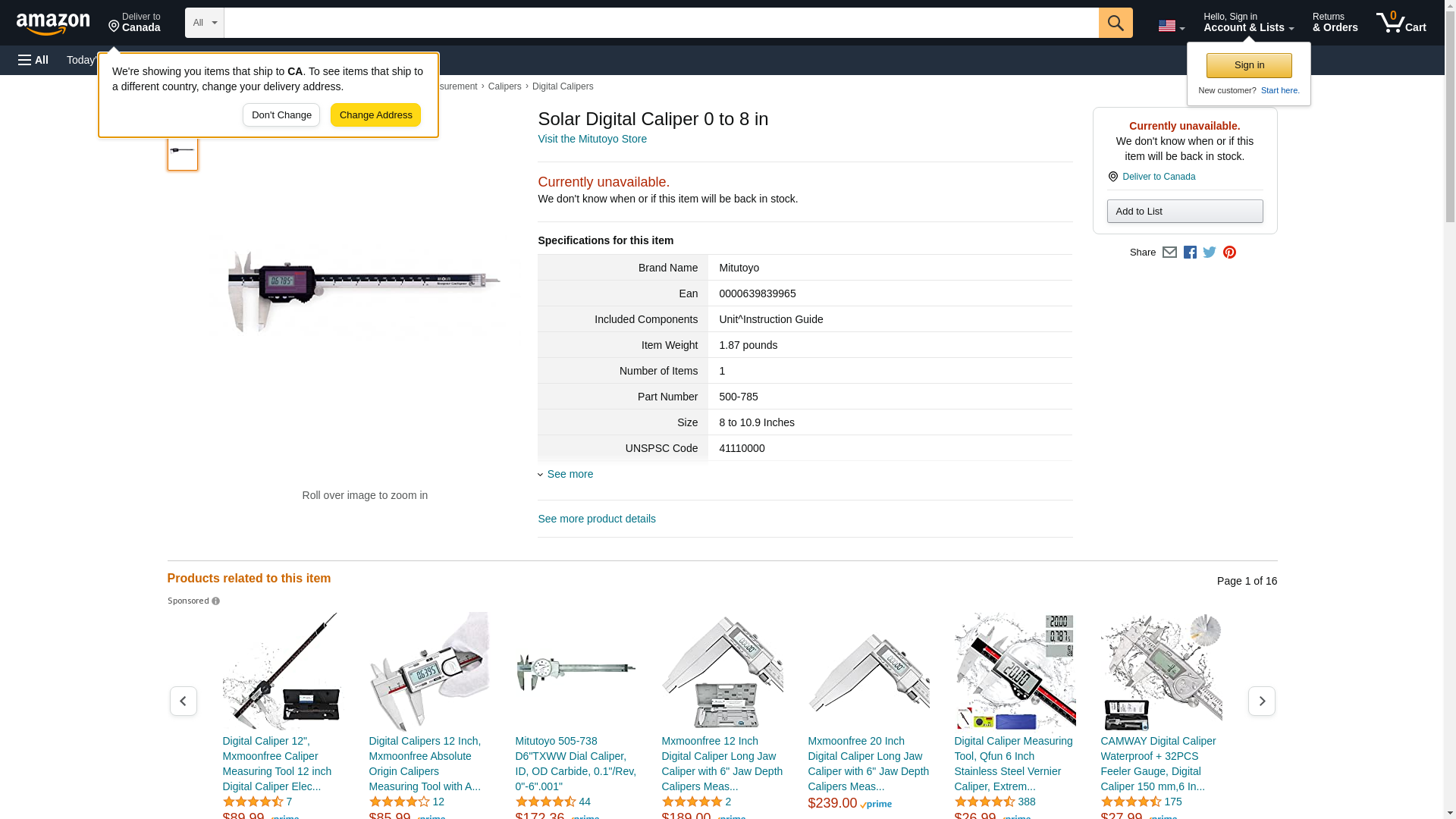 Mitutoyo 500-785 Solar Digital Caliper, 0 to 8 in
