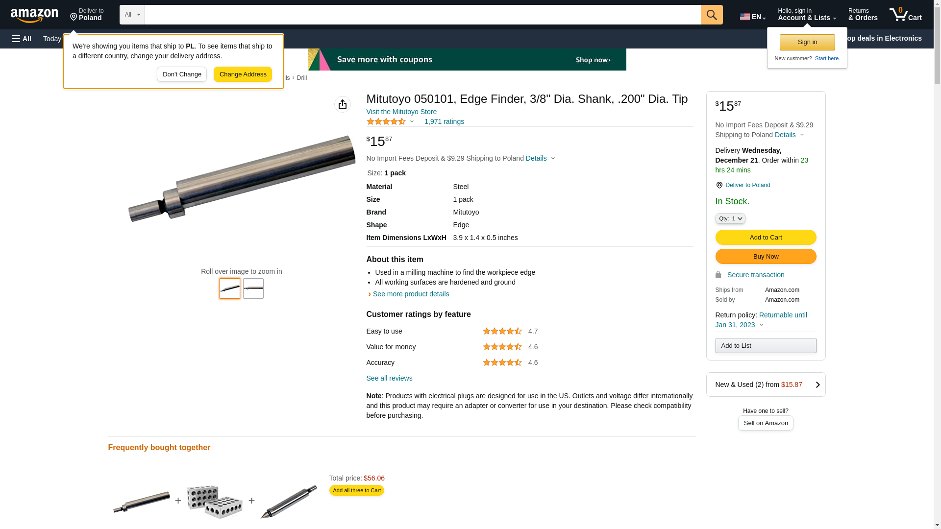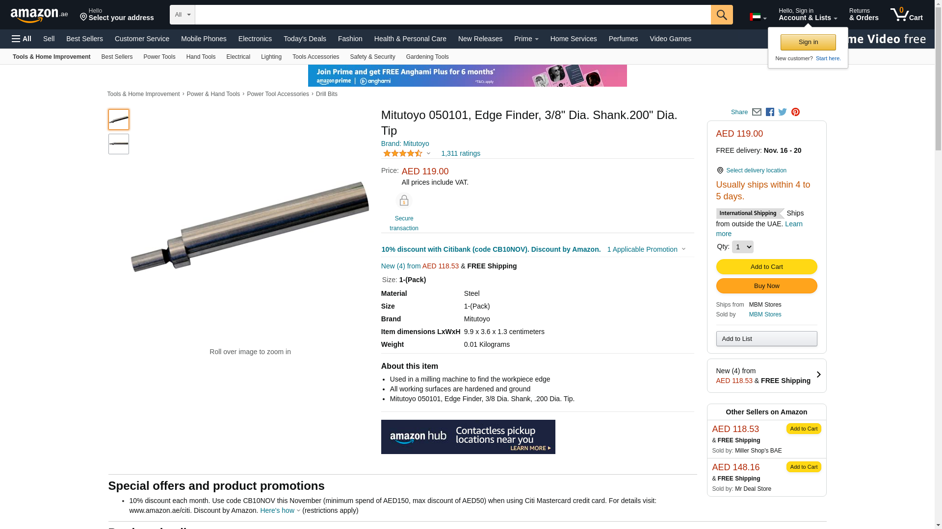 Mitutoyo 050101, Edge Finder, 3/8" Dia. Shank, .200" Dia. Tip