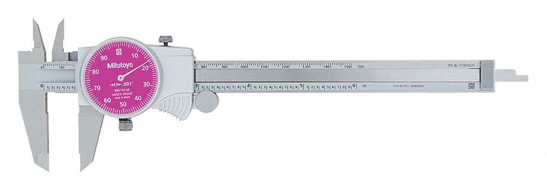 Mitutoyo 505-742-52 D6"TX-2 Dial Caliper, Purple Face, 0.1"/Rev, 0"-6", 0.001"