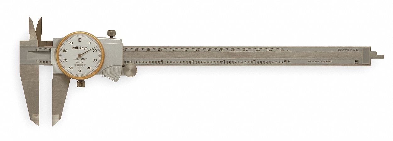 Mitutoyo 505-743 Dial Caliper, 0.1" per Rev, 0-8" Range, 0.001" Accuracy