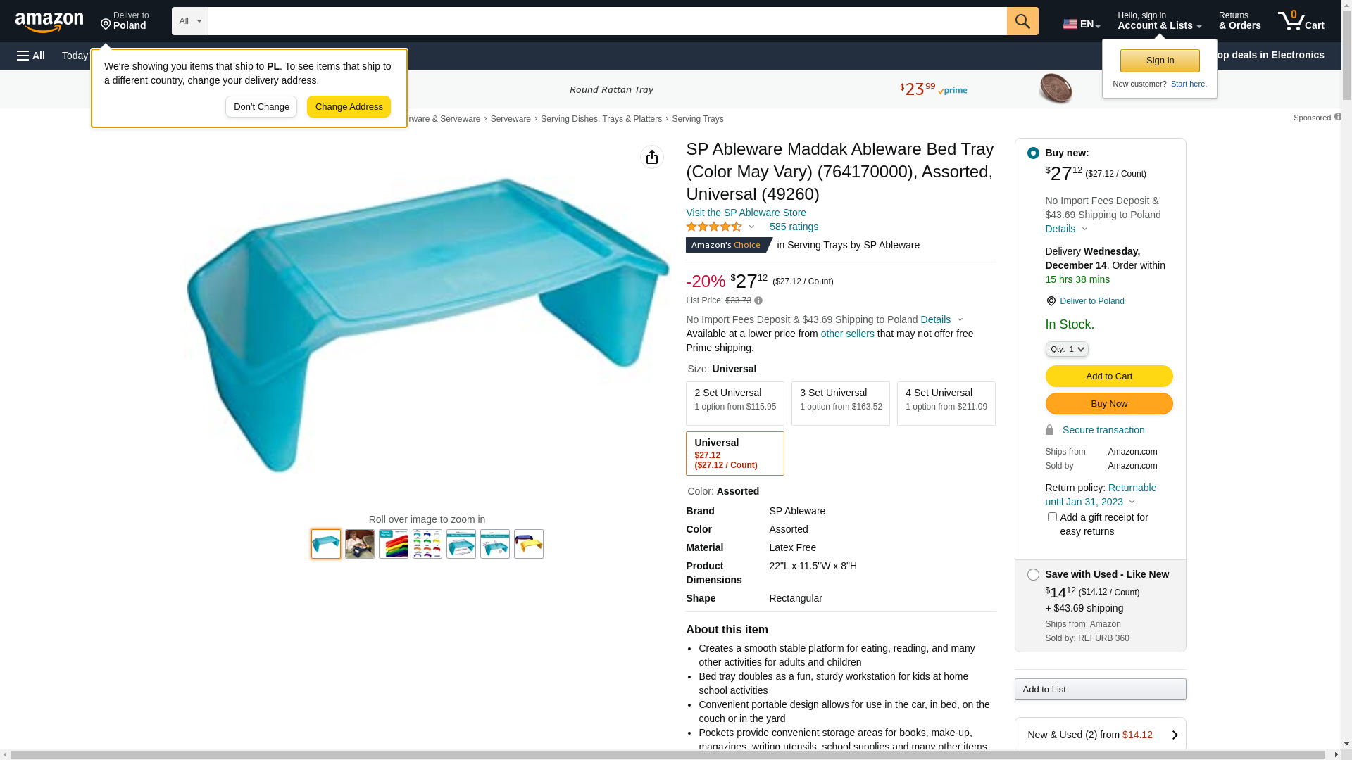 Maddak Ableware Bed Tray (Color May Vary) (764170000): Maxedbuy.com