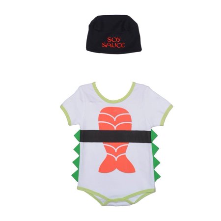 Sozo Baby Sushi Bodysuit & Cap Set, White/Orange/Black/Green, 6-12 Months