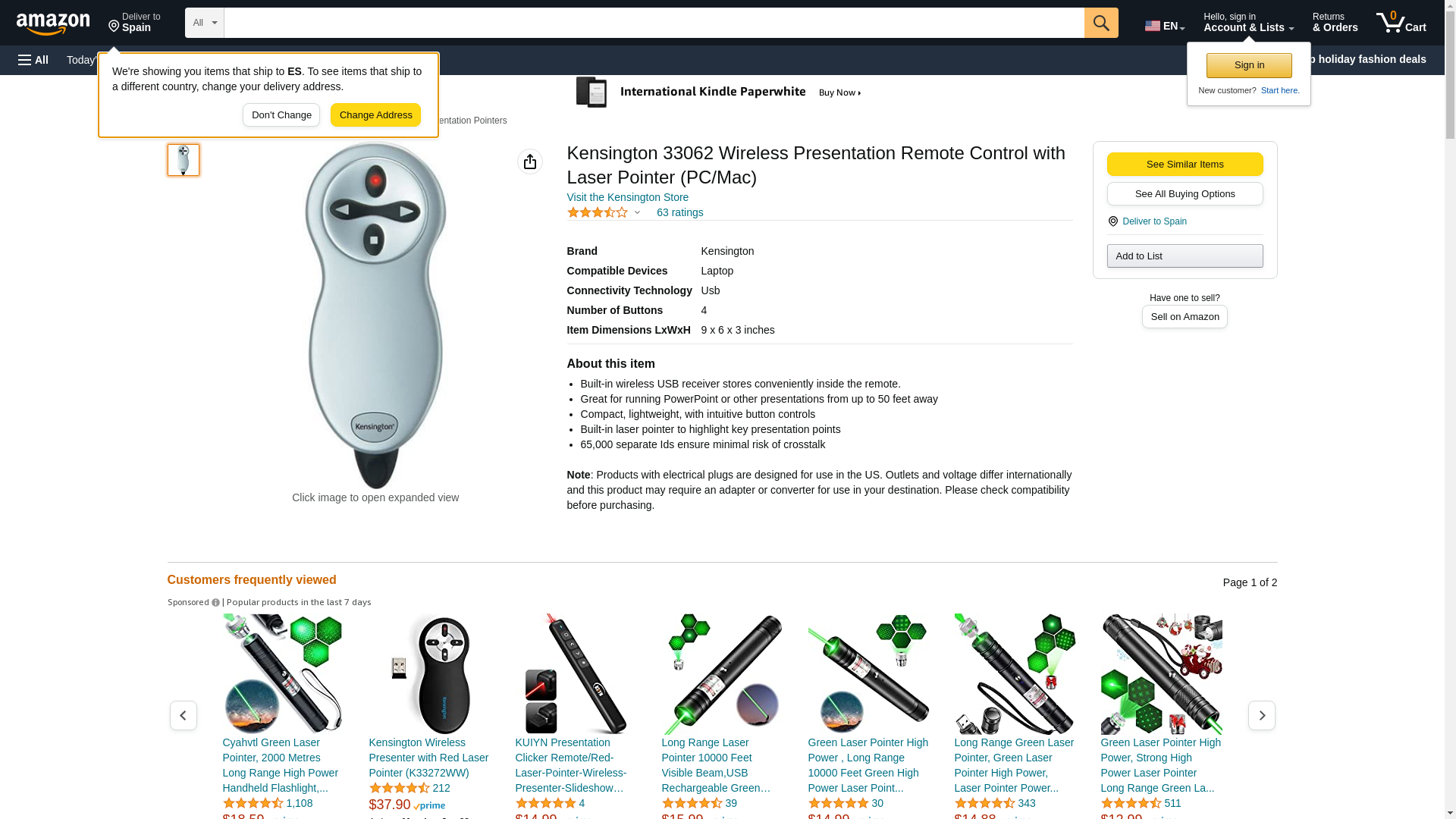 Kensington 33062 Wireless Presentation Remote Control with Laser Pointer (PC/Mac)