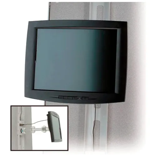 - Track slips over cubicle wall to support flat panel display at optimal viewing height.