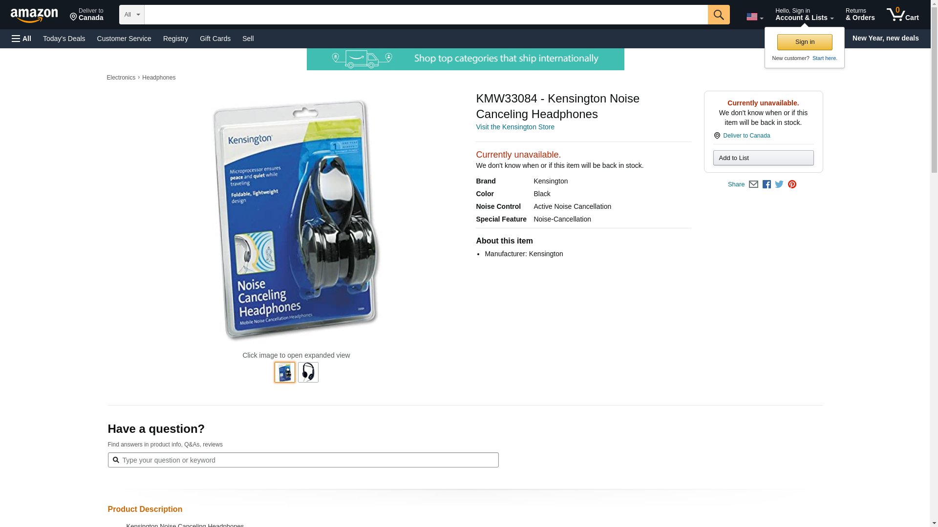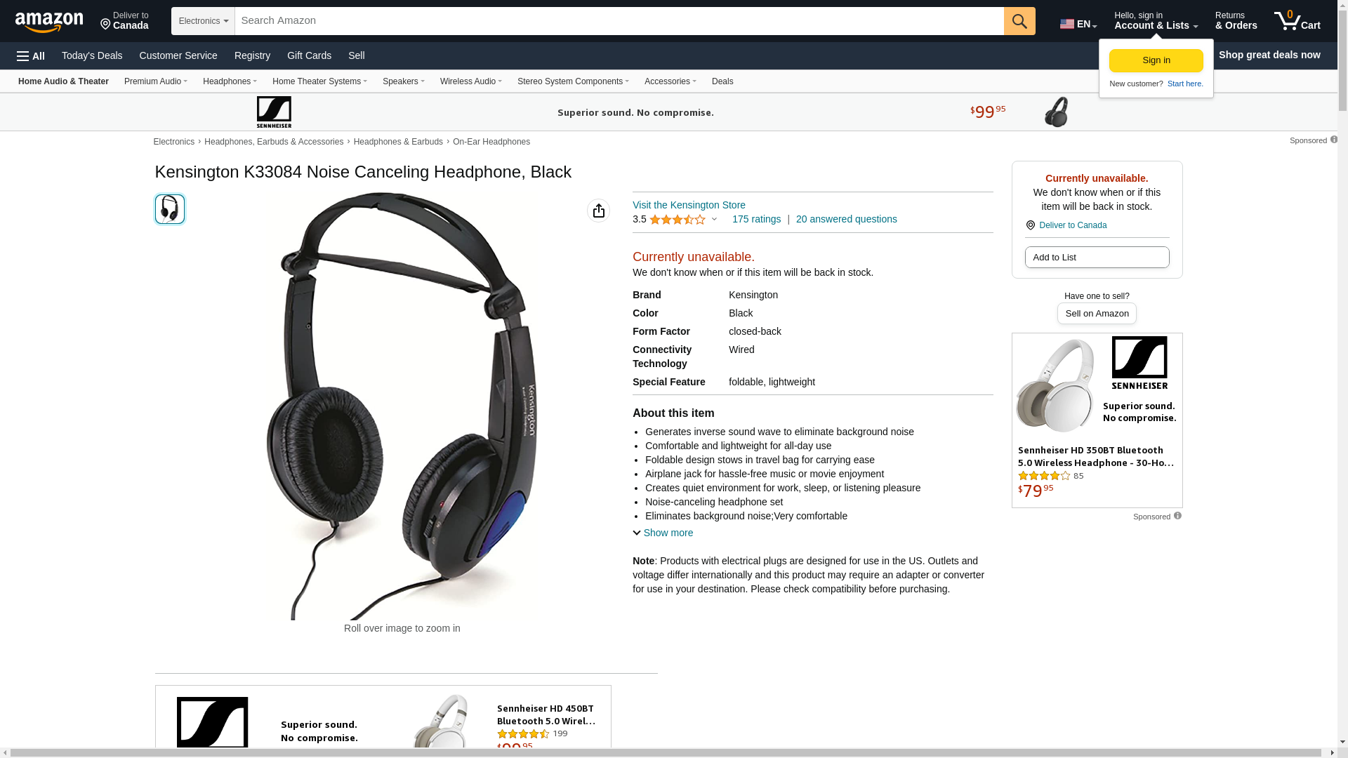 - Kensington Kensington Headphones, Noise Canceling, 5' Cord, Foldable, Bk