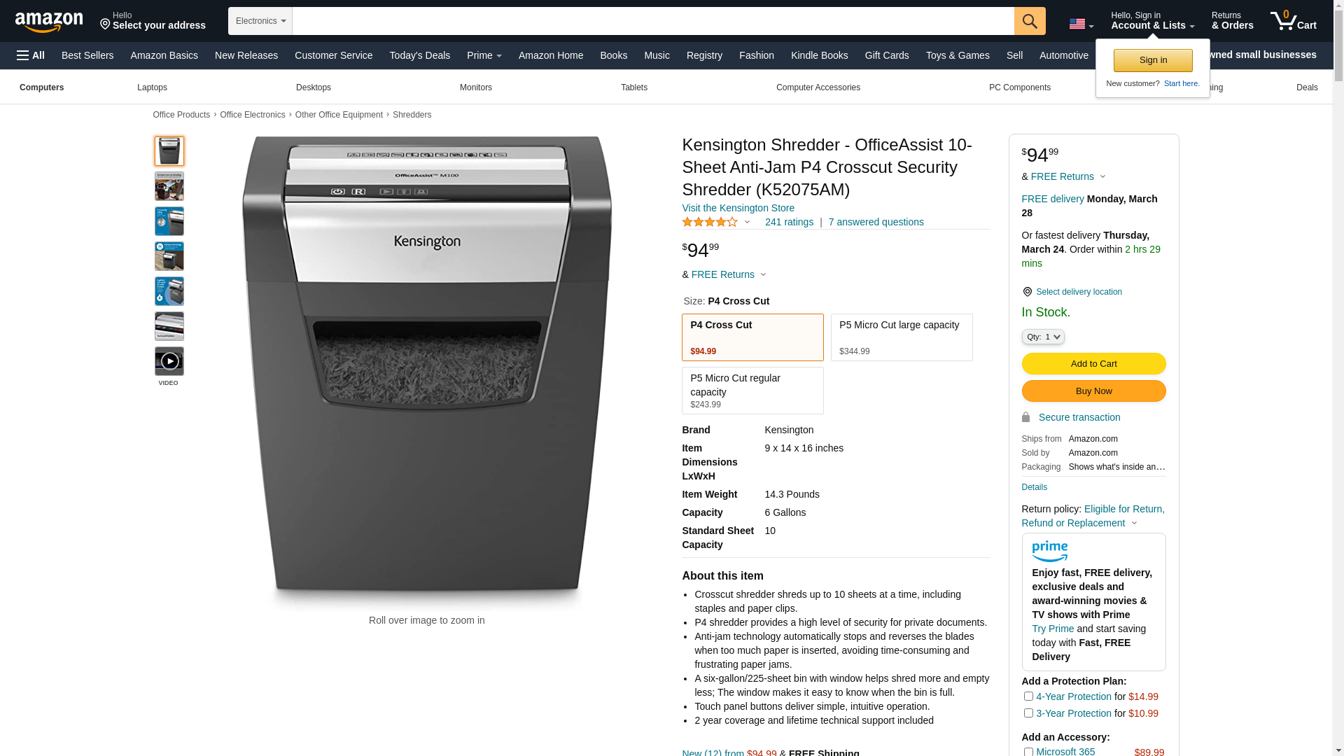 Kensington Shredder - OfficeAssist 10-Sheet Anti-Jam P4 Crosscut Security Shredder (K52075AM)