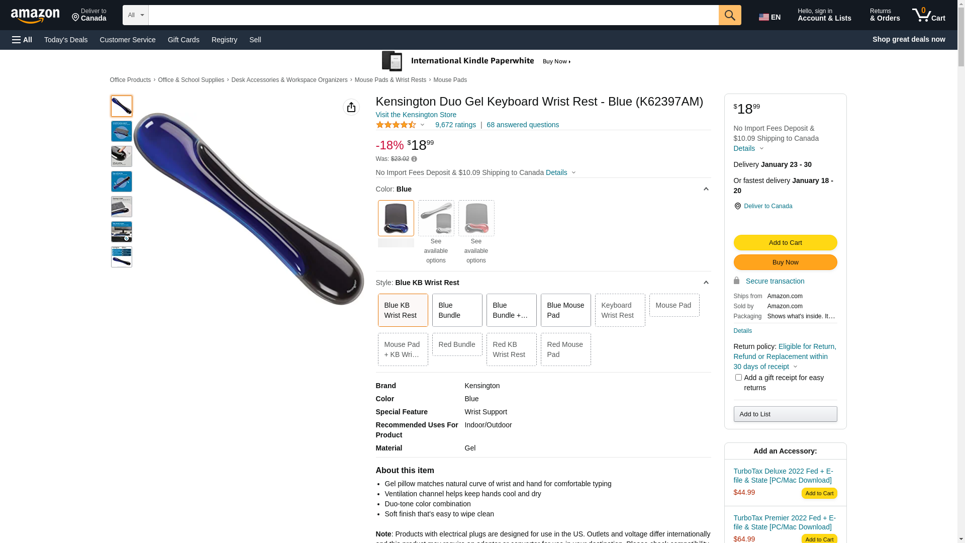 Kensington Duo Gel Keyboard Wrist Rest - Blue (K62397AM)