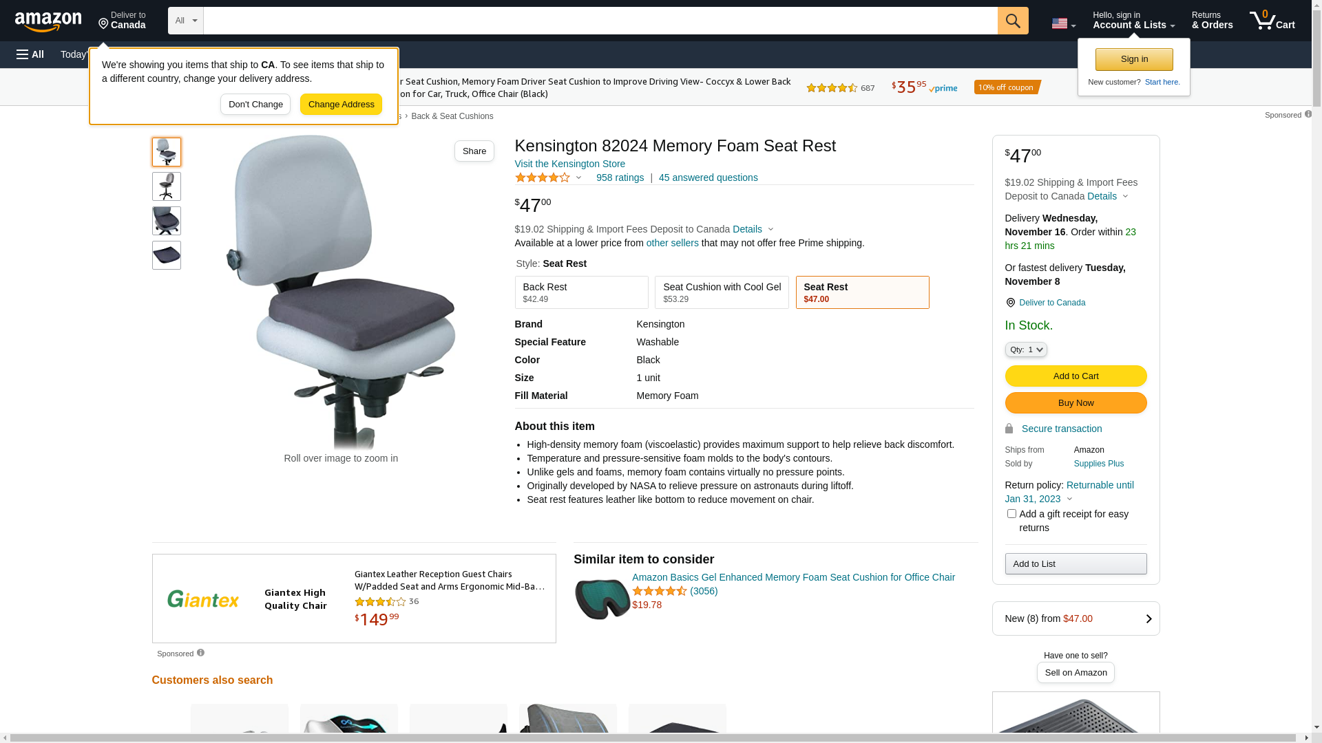 Kensington 82024 Memory Foam Seat Rest. High-density memory foam (viscoelastic) provides maximum support to help reli...