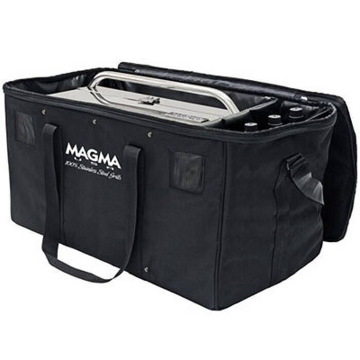 <b>Padded Grill & Accessory Carrying/Storage Case</b><br/><br/>Fits Magma and most portable rectangular grills with these cooking surface sizes: 12" x 24"<br/><br/>Conveniently store and transport your grill and accessories in one of Magma's new padded carrying cases. Designed to store all of your grilling gear in one space saving location. This bag is outfitted with a large storage compartment for a grill, pockets for storing a serving shelf, griddle, fish/ veggie tray. Includes an additional side pocket for storing up to (3) 1lb. propane canisters and (2) control valve/ regulators. Additional features like thick padding for maximum protection and heavy duty carrying handles and strap make this a must have for every grilling enthusiast. With the same quality and craftsmanship you've come to expect, once again Magma has just what you've been looking for. <!--- cis:JPgPJMZuNzo= --->
