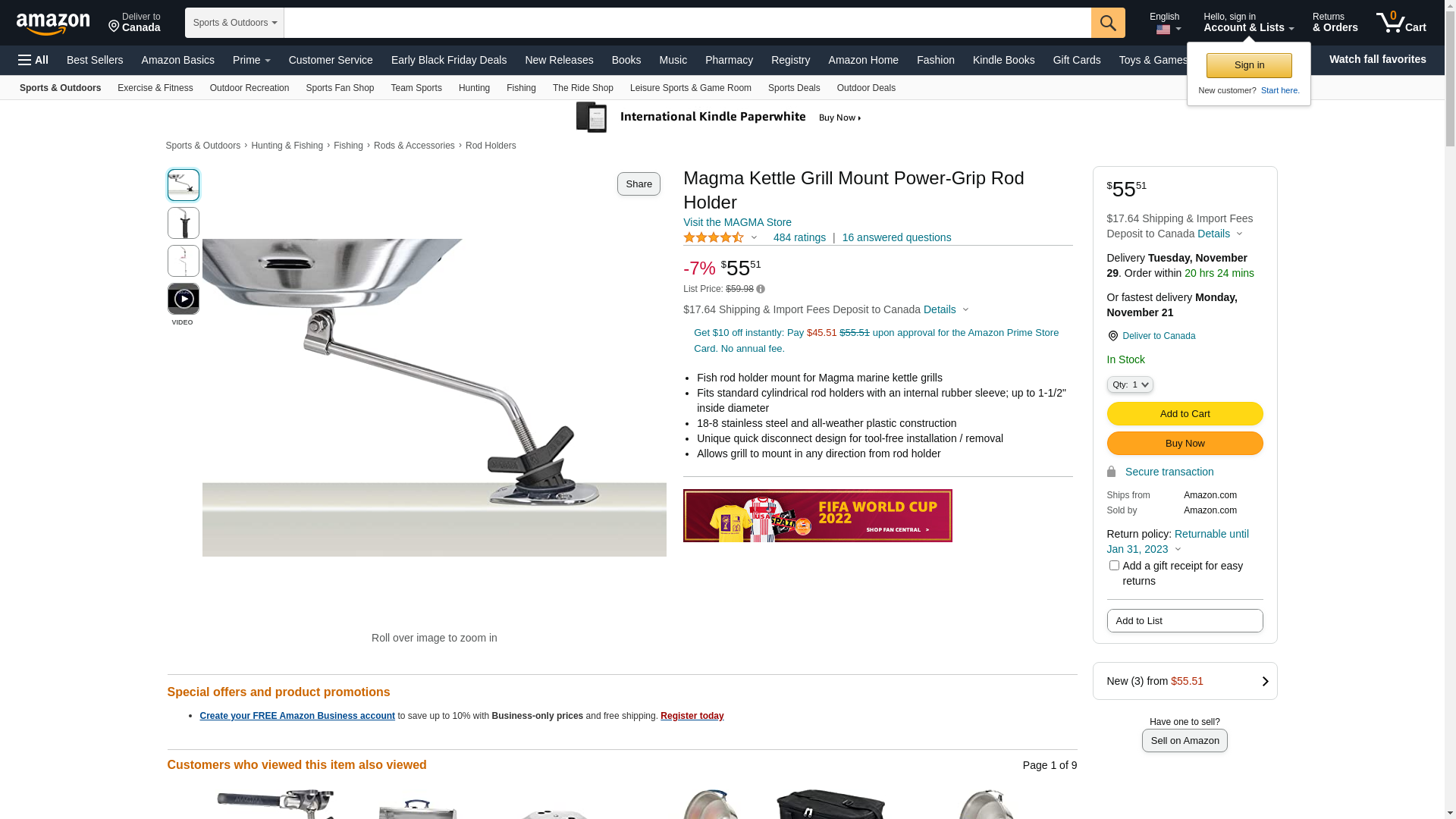 | Feature | Fish rod holder mount for Magma marine kettle grills |