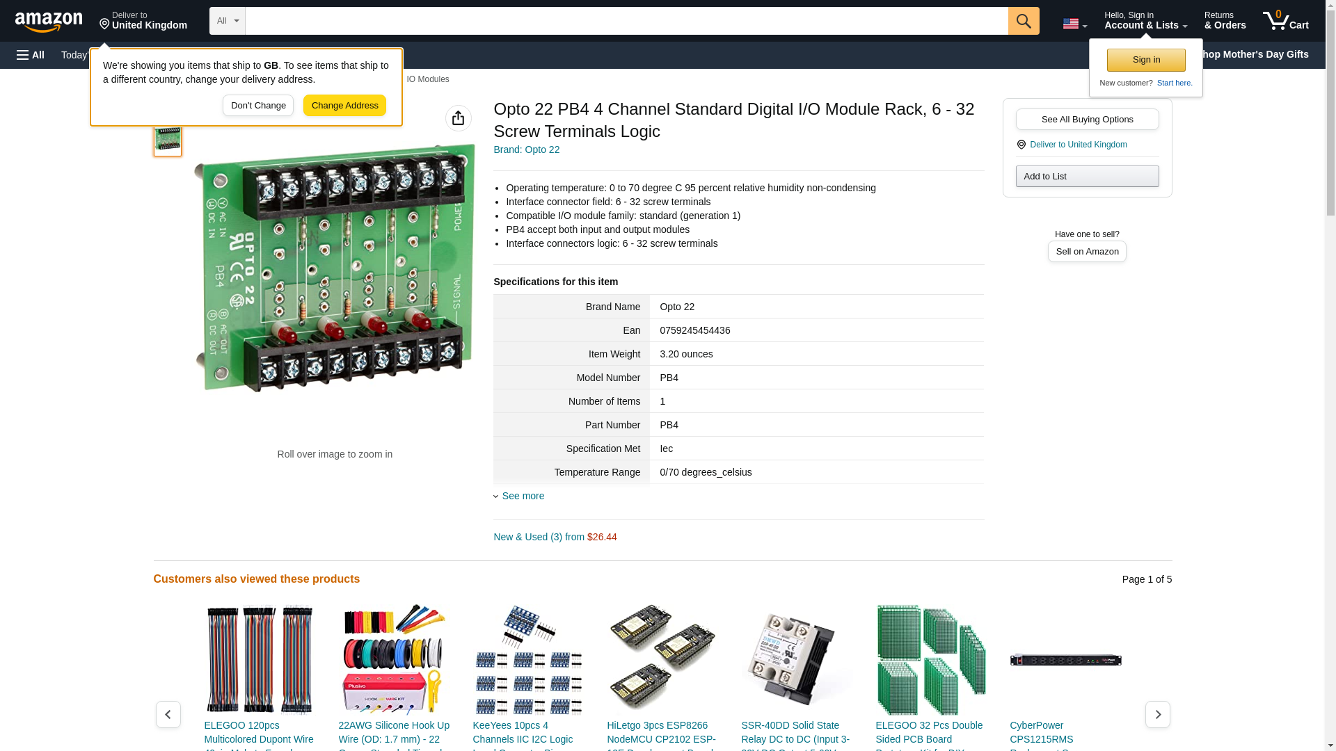 Opto 22 PB4 4 Channel Standard Digital I/O Module Rack, 6 - 32 Screw Terminals Logic