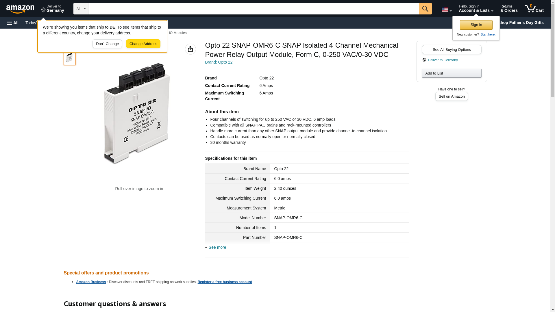 | Onlinecomponents.com | SNAP-OMR6-C | 1 | 1 | 1 @ $98.10, 2 @ $91.56, 6 @ $85.83 | |