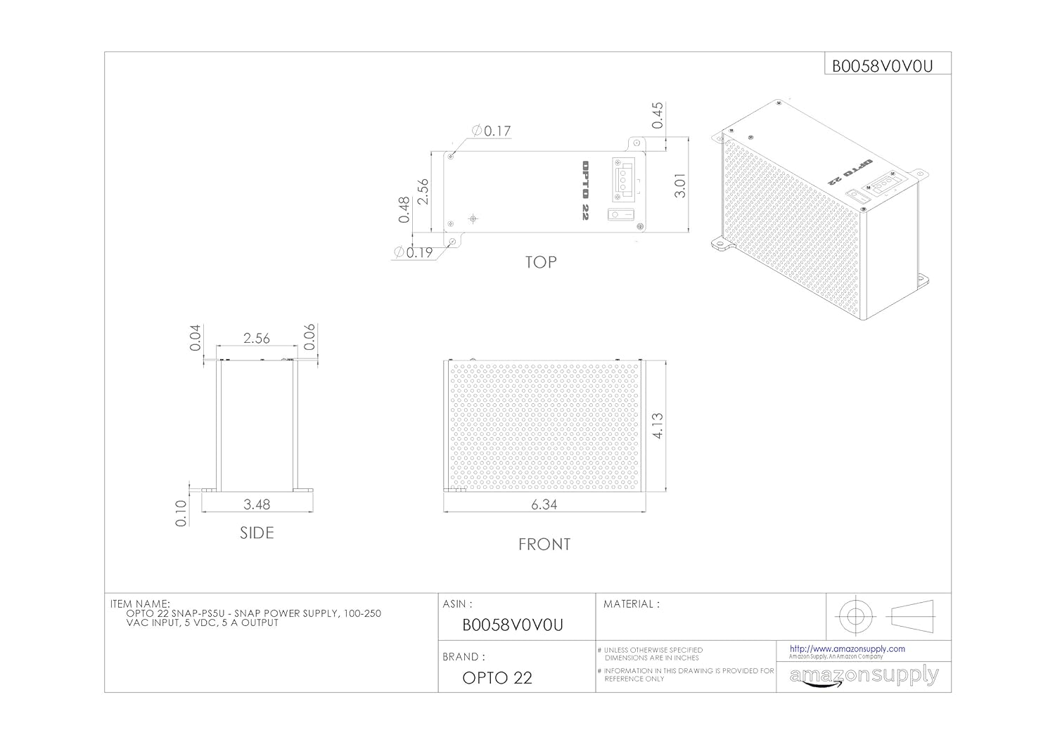 Opto 22 SNAP-PS5U - SNAP Power Supply, 100-250 VAC Input, 5 VDC, 5 A Output
