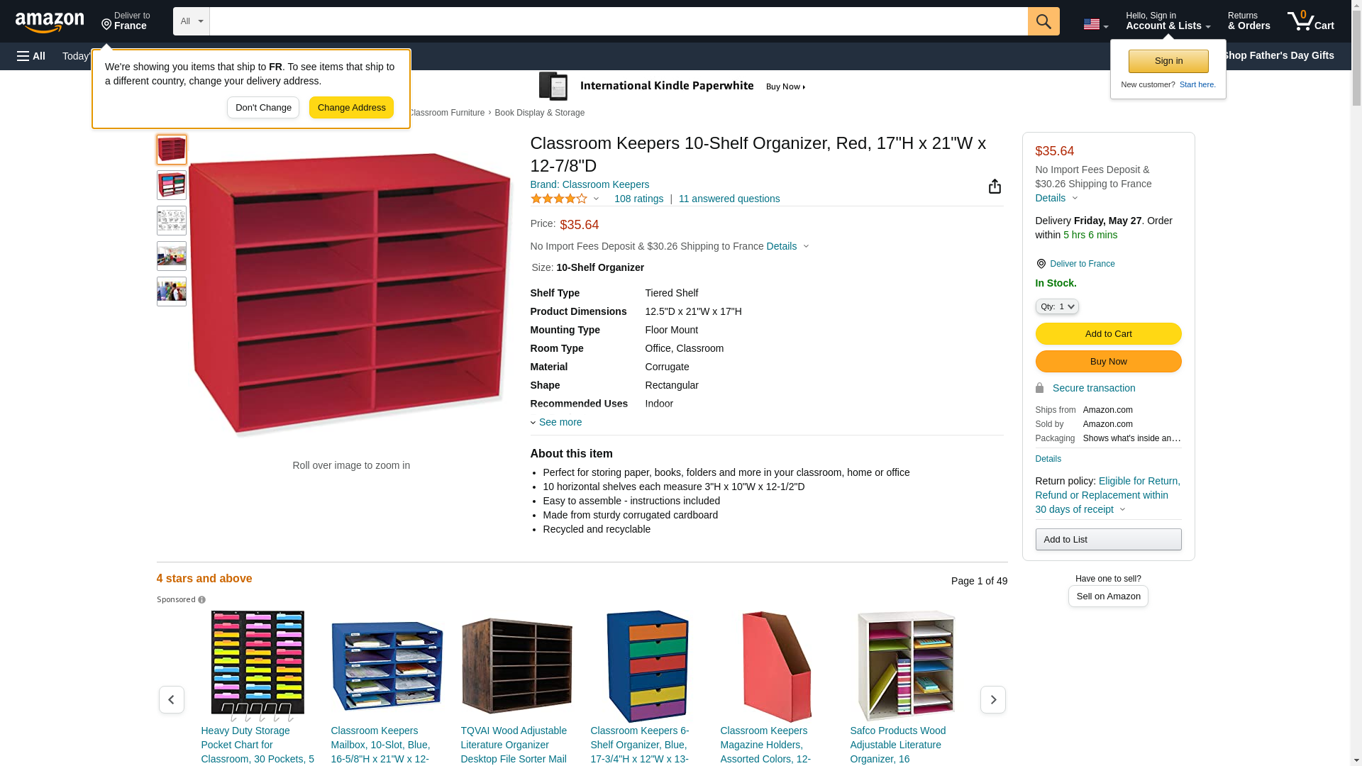 Classroom Keepers 10-Shelf Organizer, Red (001314)