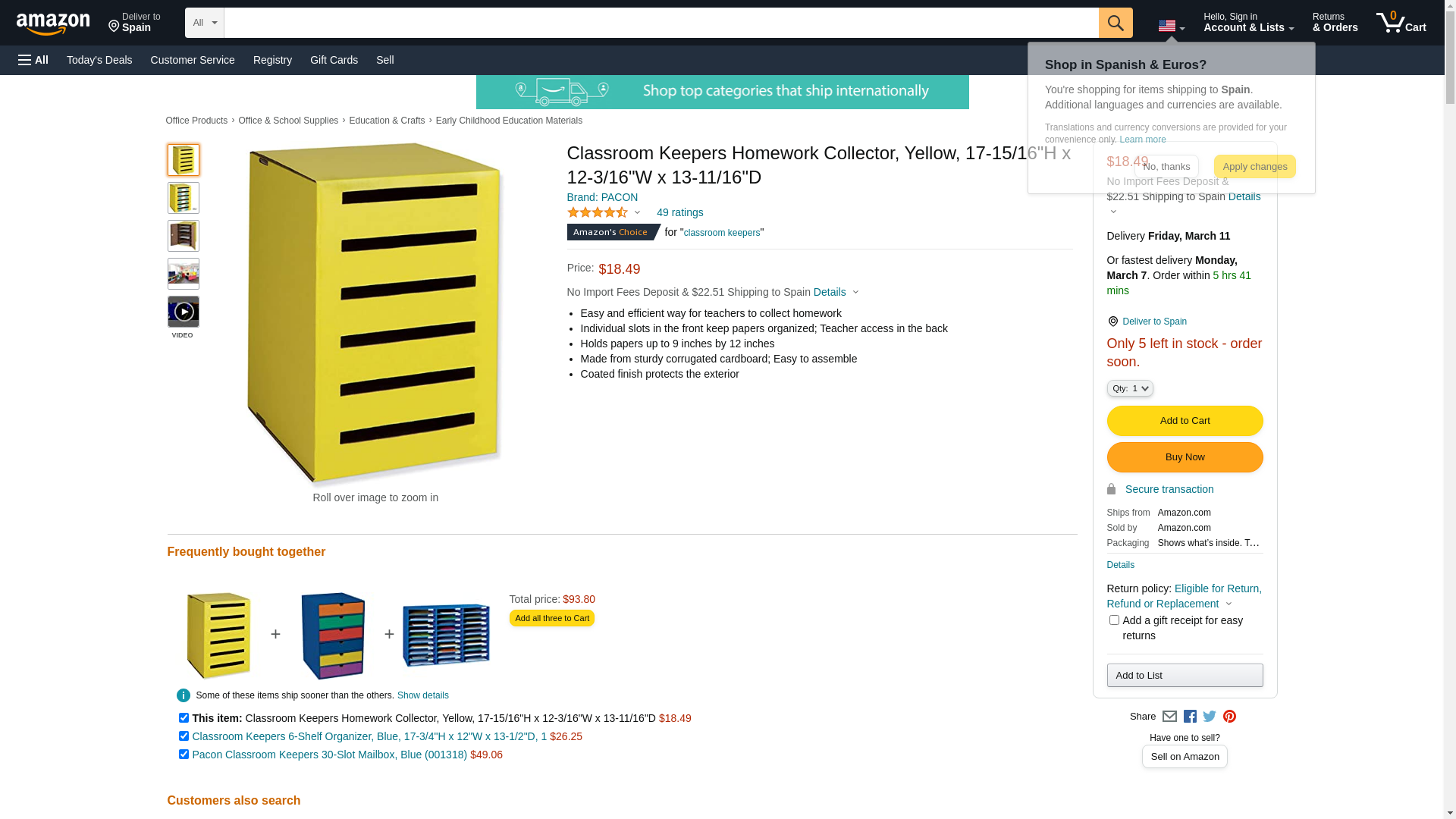 Classroom Keepers Homework Collector, Yellow, 17-15/16"H x 12-3/16"W x 13-11/16"D