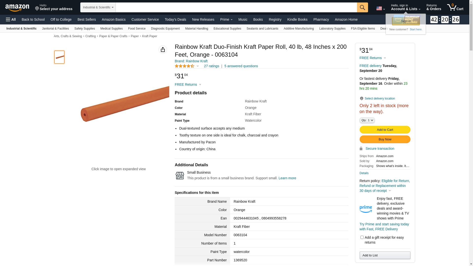 Rainbow Kraft Duo-Finish Kraft Paper Roll, 40 lb, 48 Inches x 200 Feet, Orange - 0063104