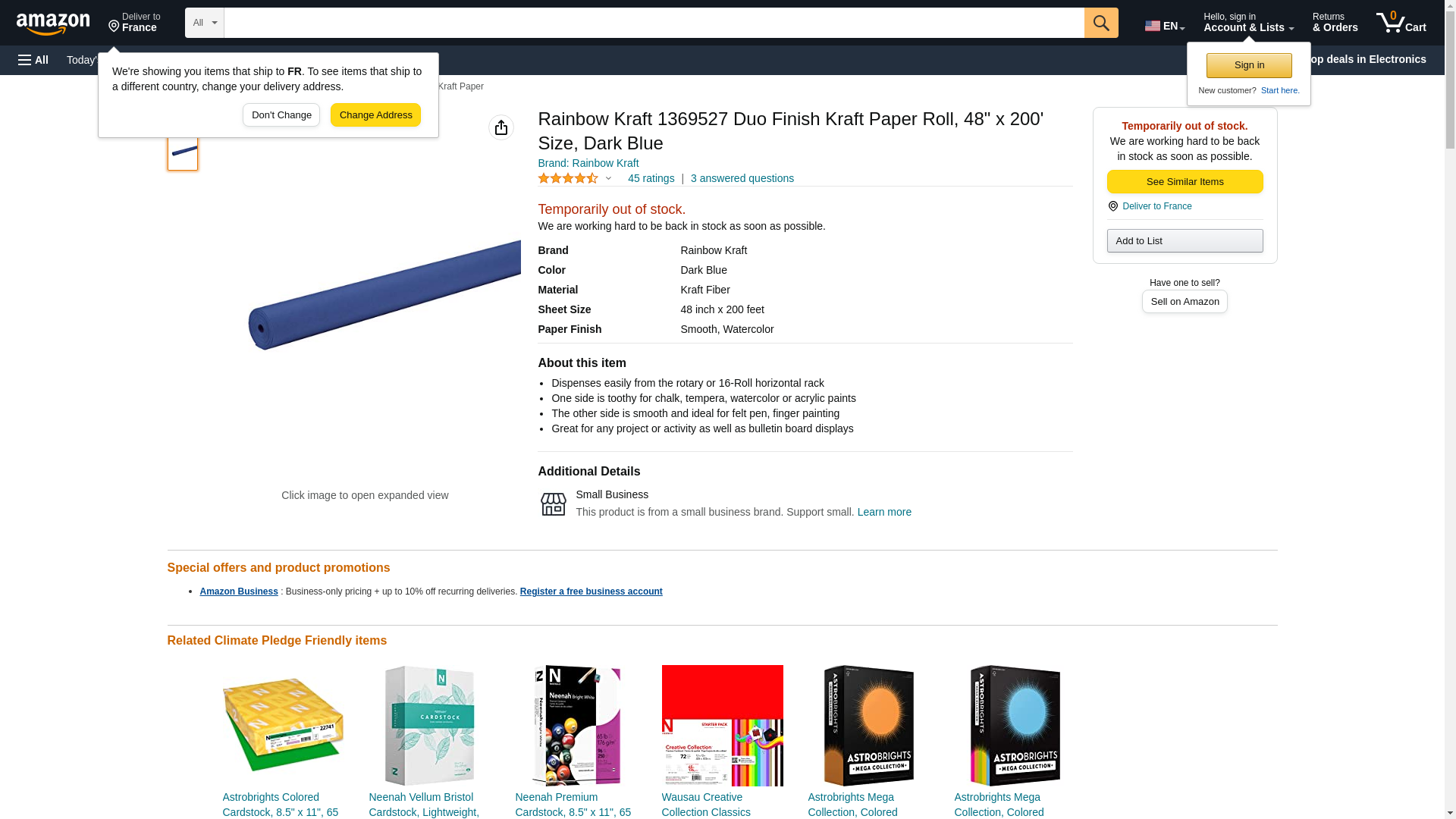 Rainbow Kraft 1369527 Duo Finish Kraft Paper Roll, 48" x 200' Size, Dark Blue