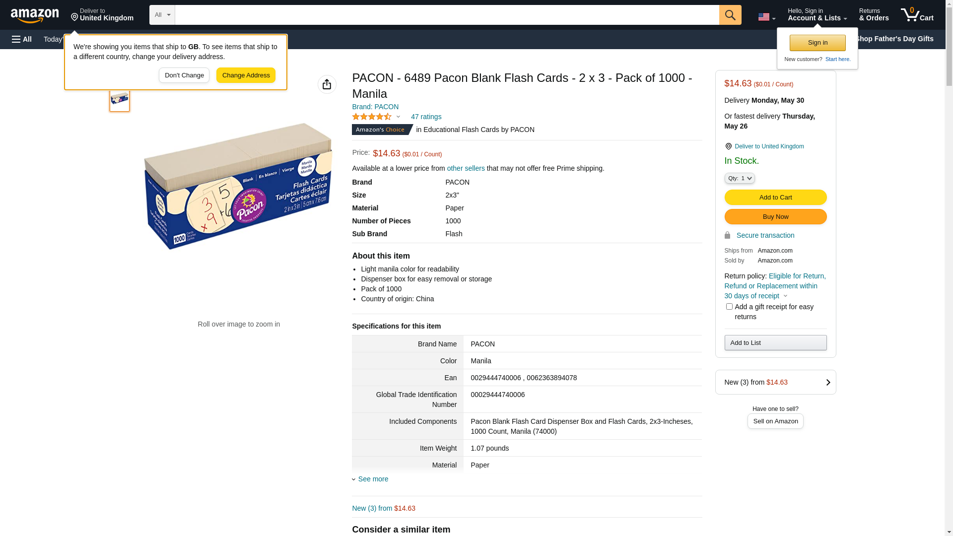 Pacon Blank Flash Cards, Manila, 2 x 3 Inches, Pack of 1000
