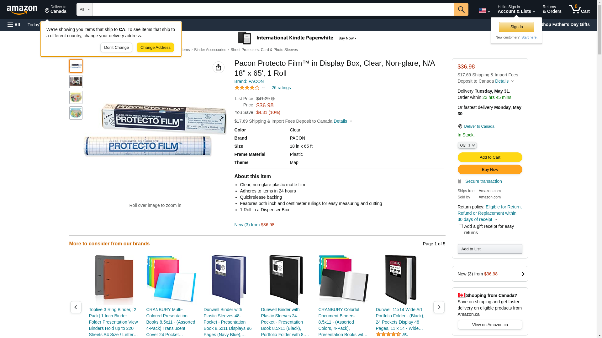 Pacon Protecto Film in Display Box, Clear, Non-glare, N/A 18" x 65', 1 Roll