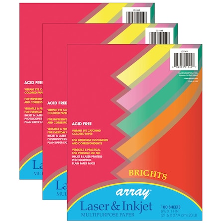 - PACON 101049 Array Colored Bond Paper, 20lb, Letter, Assorted, 100 Sheets/Pack