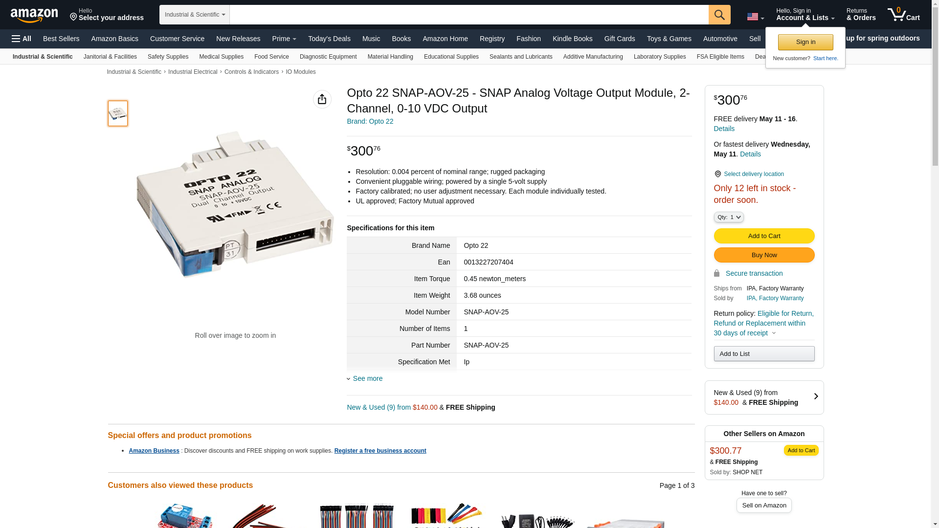 | Airline Hydraulics | OPTO22 SNAP-AOV-25 | 1 | 1 | 1 @ $400.42 |