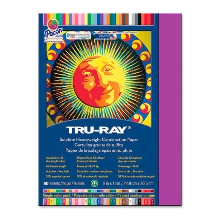 PACON Corporation, Tru-Ray Construction Paper, PAC103000, 76 lbs., 9 x 12, Magenta, 50 Sheets/Pack, Sold As 1 Pack