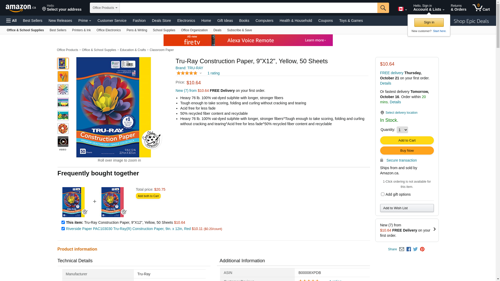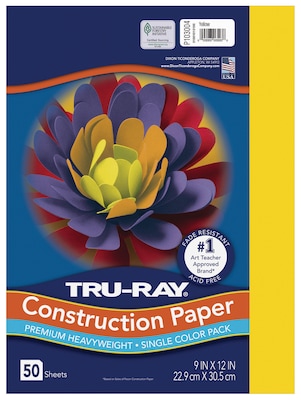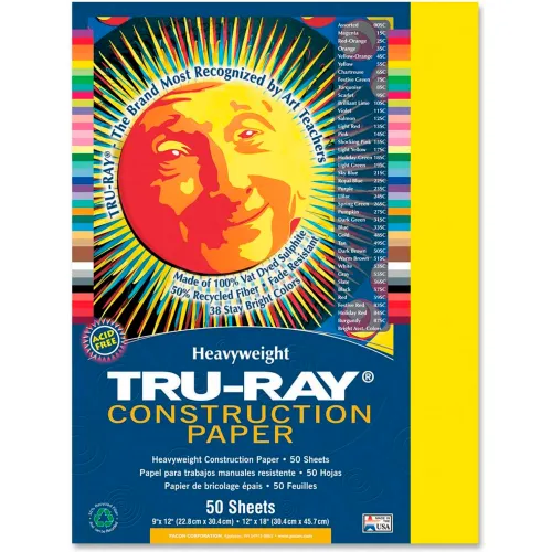 Pacon 103004 Tru-Ray Construction Paper, 76 lbs., 9 x 12, Yellow, 50 Sheets/Pack