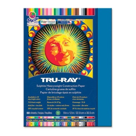 Present information in a creative way with this economical and eco-friendly Pacon 103022 Tru-Ray 9" x 12" blue 76# construction paper. Constructed with a 76# basis weight, this construction paper boasts a heavy weight sulphite construction that is fade-resistant to give your projects that fresh, newly created look for longer. Additionally, thanks to the strong sulphite fibers, this paper has a rigid structure, which works well with projects that need extra support. This construction paper features a blue color to create a distinctive background for your artwork. It is also acid-free to eliminate yellowing and disintegration over time. Never run out of your classroom essentials with this Pacon construction paper!.
