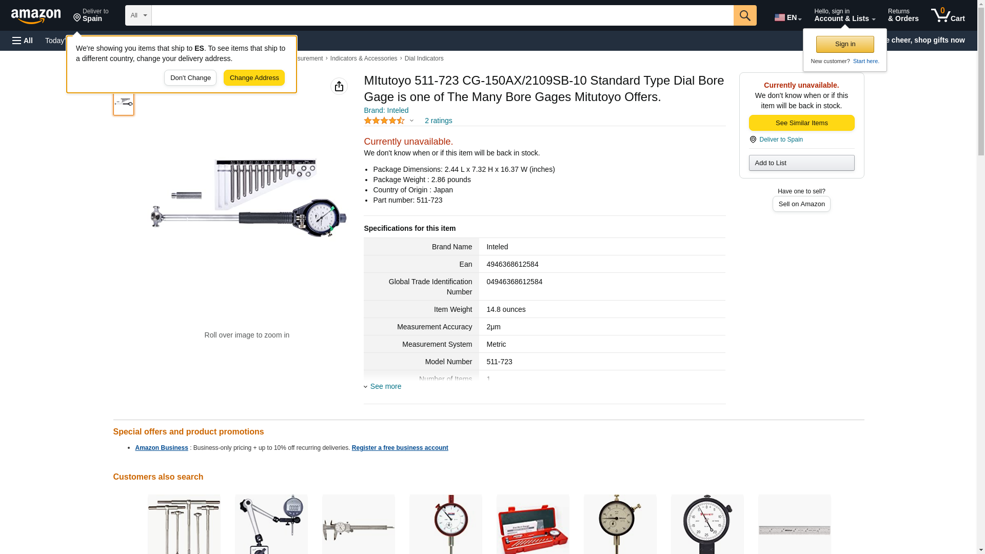 Mitutoyo 511-723 Dial Bore Gage, 50-150 mm, 0.001 mm Graduation, Stem Diameter 8 mm with 2109SB-10 Dial Indicator