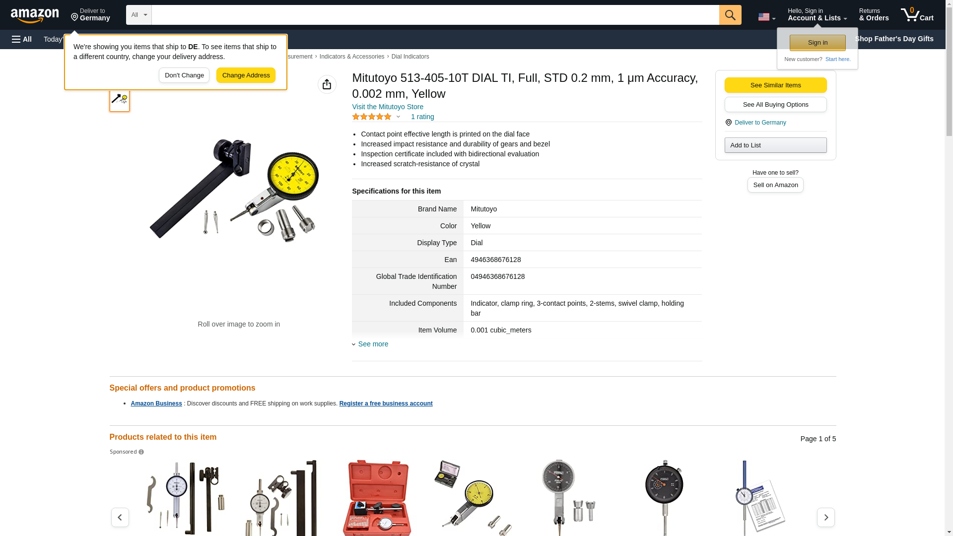 Mitutoyo 513-405-10T DIAL TI, Full, STD 0.2 mm, 1 μm Accuracy, 0.002 mm, Yellow