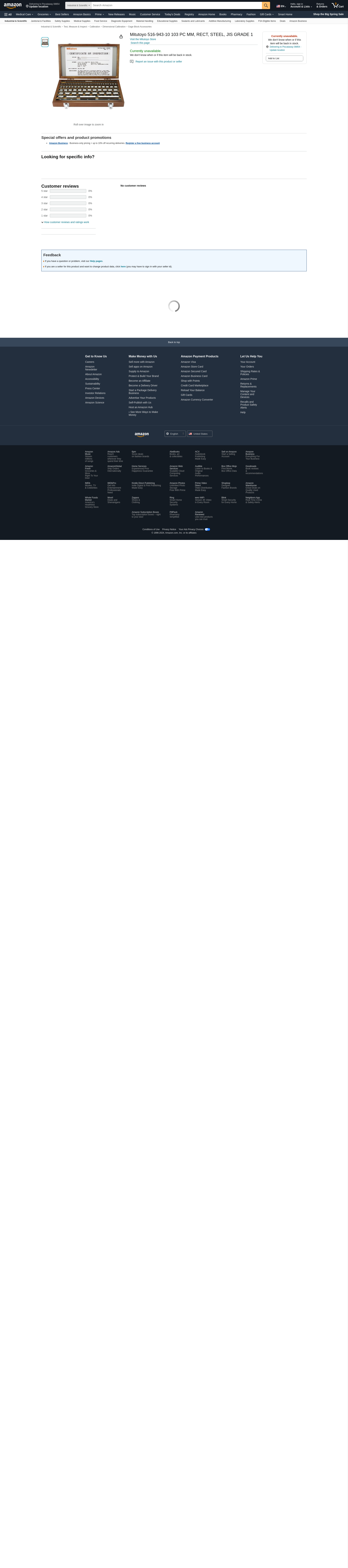 Mitutoyo 516-943-10 103 PC MM, RECT, STEEL, JIS GRADE 1