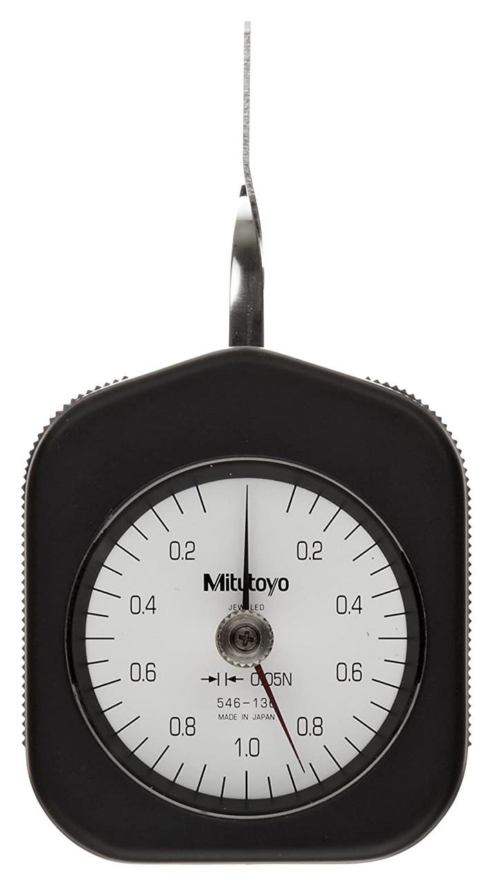 Mitutoyo 546-136 Peak Hold Dial Tension Gauge, 0.05N Graduation, 0.1-1N Range. Measures contact force of an instrumen...