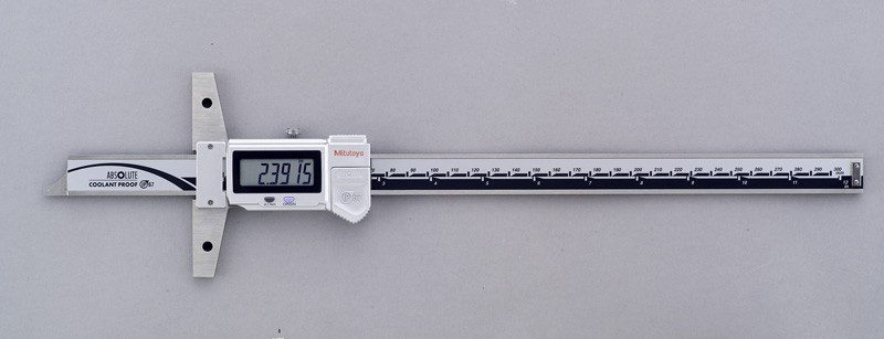 Mitutoyo 571-263-10 ABSOLUTE Digimatic LCD Depth Gauge, Caliper Type, 0-12"/0-300mm Range, 0.0005"/0.01mm Graduation, +/-0.0015" Accuracy, IP67 Coolant Proof Model