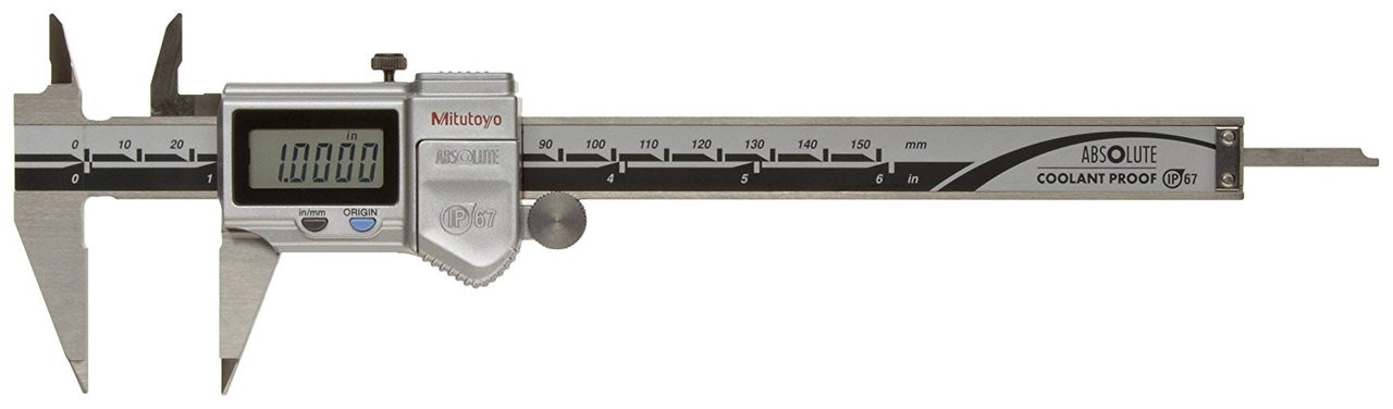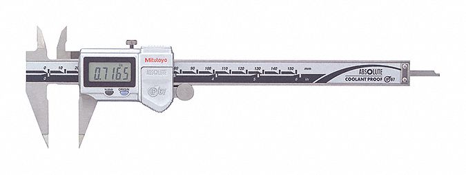 Mitutoyo 573-721-20 Caliper, DIGIMATIC, 6 in, COOLANT Proof, Point, W/Thumb Roller