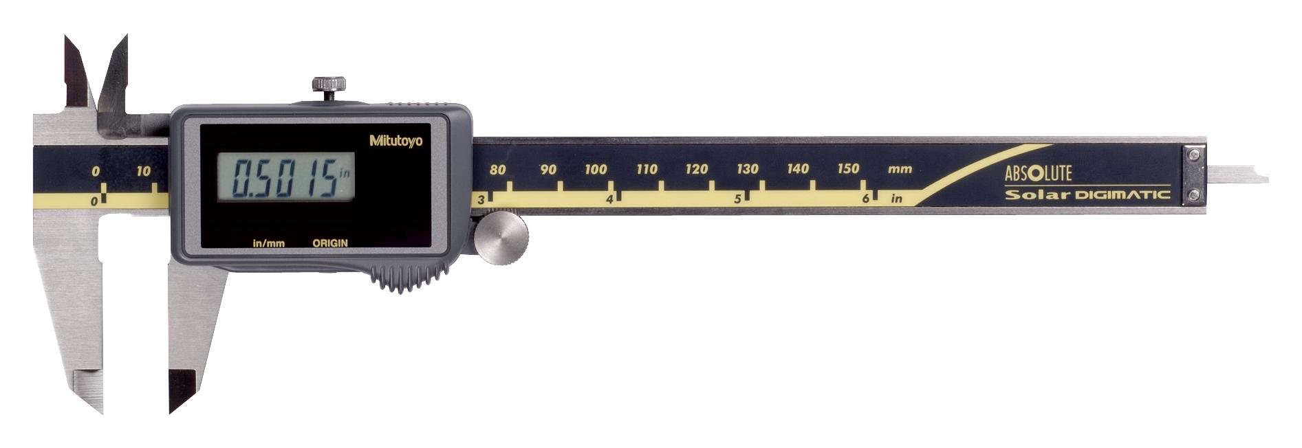 Mitutoyo 500-474 Digital Calipers, Solar Powered, Inch/Metric, for Inside, Outside and Step Measurements, Stainless Steel, 0"/0mm-6"/150mm Range, +/-0.001"/0.01mm Accuracy, 0.0005"/0.01mm Resolution