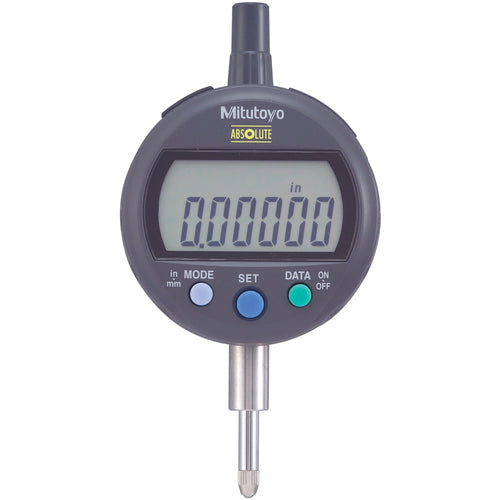 Mitutoyo 543-392B Absolute Digimatic Indicator, ID-C-Type, #4-48 UNF Thread, 3/8" Stem Dia., Flat Back, 0-0.5" (0-12.7mm) Range, 0.00005" or 0.001mm Resolution, +/-0.0001" Accuracy, Meets IP42 Specifications