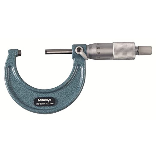 Mitutoyo 103-138 Outside Micrometer, Baked-enamel Finish, Ratchet Stop, 25-50mm Range, 0.01mm Graduation, +/-0.002mm Accuracy