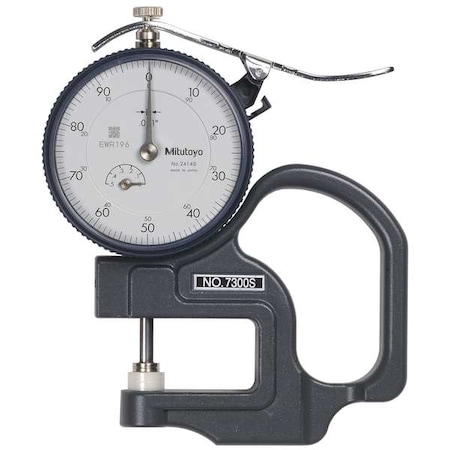 | Feature | <b>Price For:</b> Each <b>Features</b>: CERA Ceramic Anvils <b>Item</b>: Dial Thickness Gage <b>Contact Type</b>: Flat CERA <b>Flat Contact Dia.</b>: 0.394" <b>Range (In.)</b>: 0 to 0.500 <b>Resolution (In.)</b>: 0.00100 <b>Dial Reading</b>: 0-100 <b>Throat Depth</b>: 1.18" <b>Includes</b>: Case, Certificate of Calibration <b>Accuracy</b>: +/-0.001" <b>Long Form Calibration Certificate</b>: Yes <b>Country of Origin (subject to change)</b>: Japan |